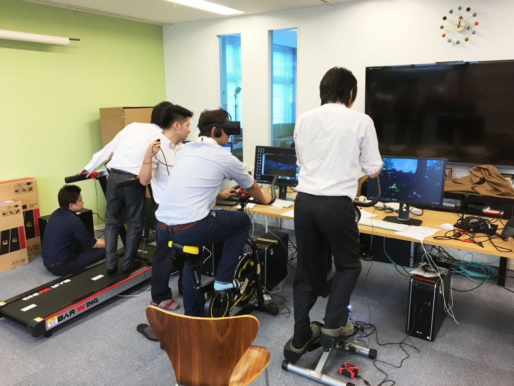 We began developing VR contents and controllers combining a number of sensors that are attached to training machine and others.